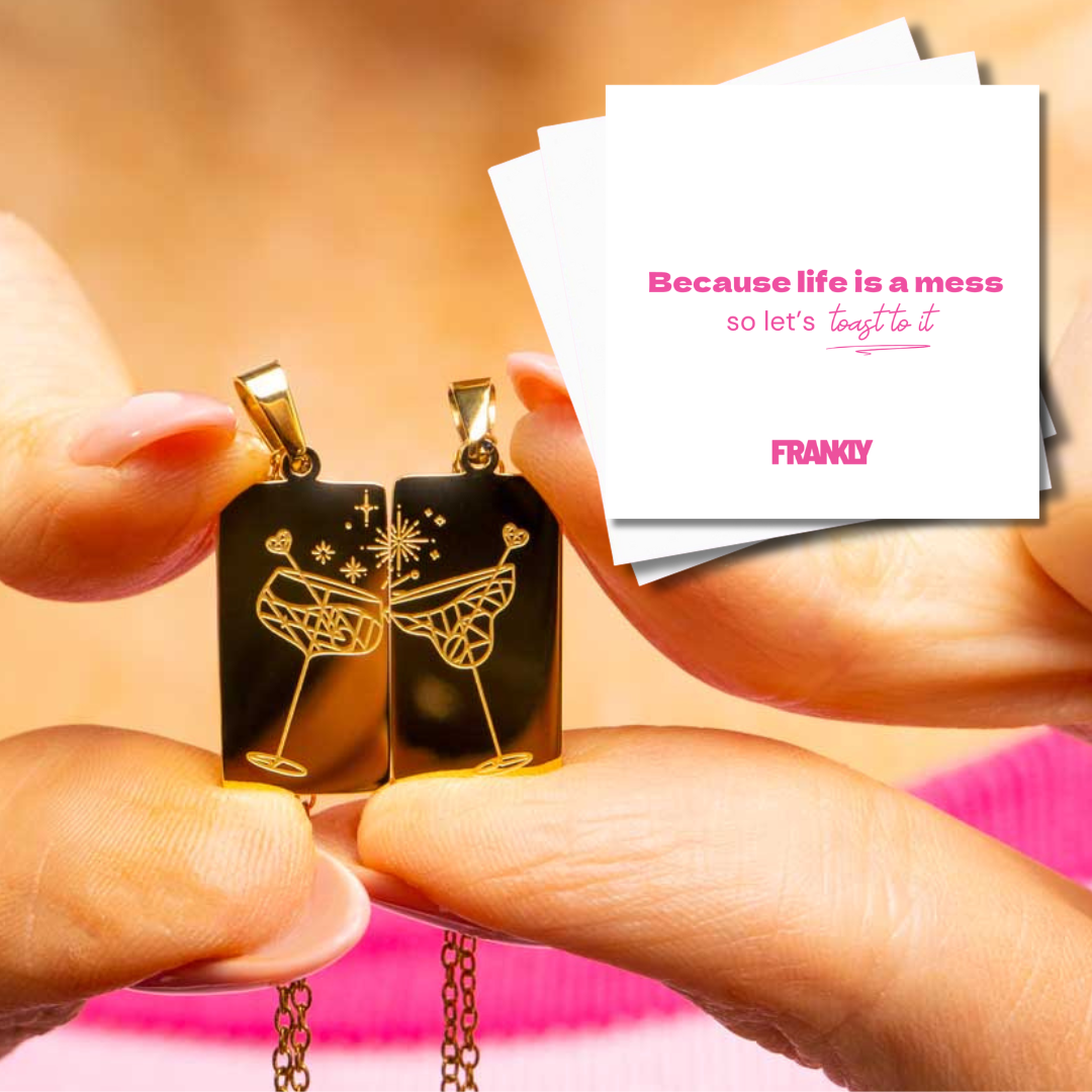 Life’s a mess, but that’s what makes it worth toasting! The Cocktail Queens Duo Necklace is the ultimate tribute to your partner-in-chaos – the one who turns spilled secrets and messy nights into the best memories.
