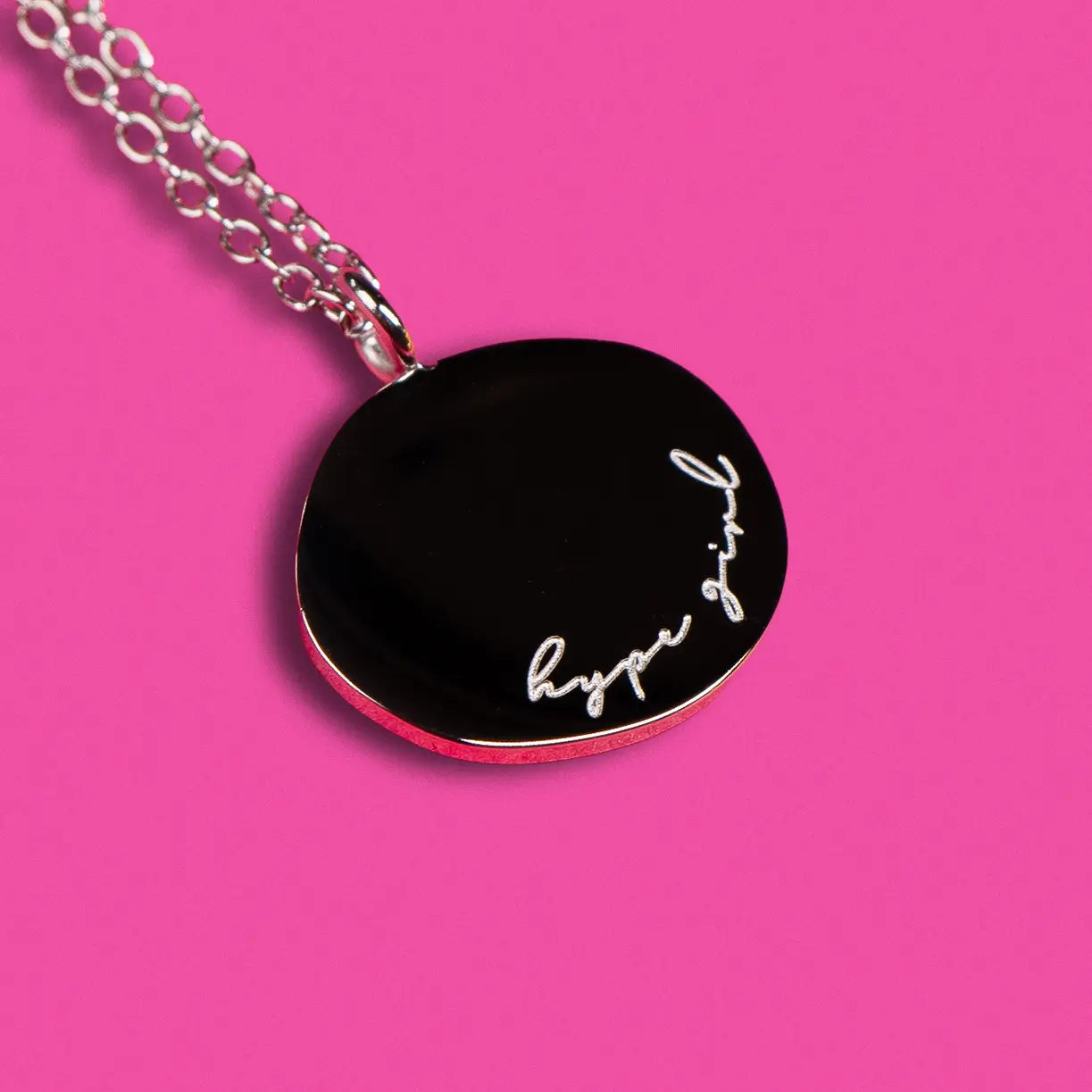 Enter the HYPE GIRL pendant. Engraved with “HYPE GIRL” in sleek, minimal styling, this necklace is for the one who never lets the vibe drop. The backing card says it all: “Spreading good vibes and high energy wherever you go.” Because let’s be real, life without their energy? Unthinkable.