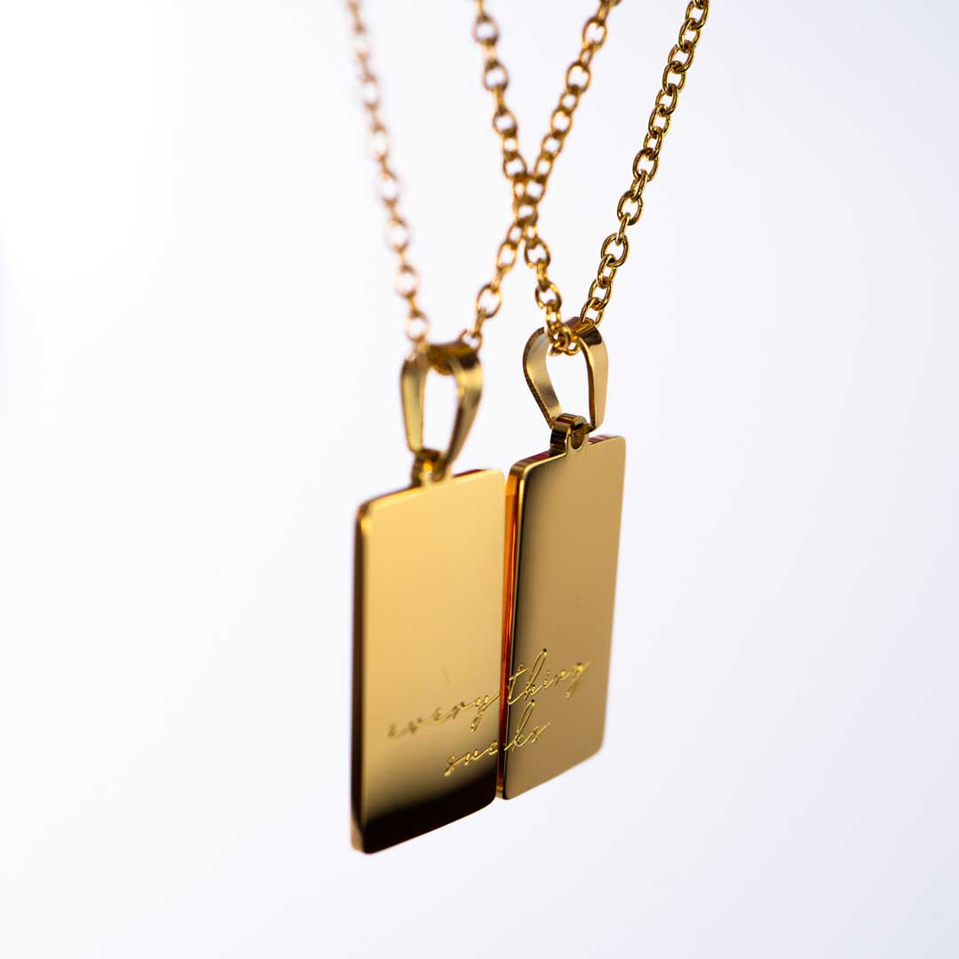 Our necklaces are constructed from super durable stainless steel and finished with a premium PVD anti-tarnish coating ensuring they never lose their shine.