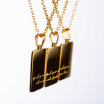Our necklaces are constructed from super durable stainless steel and finished with a premium PVD anti-tarnish coating ensuring they never lose their shine.