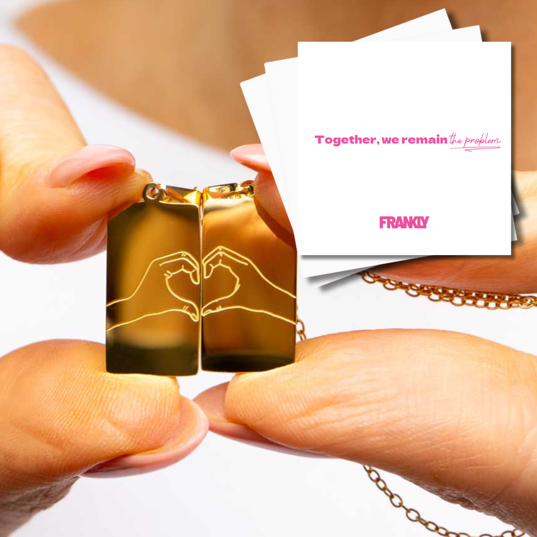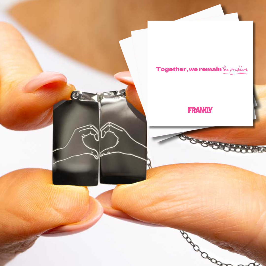 This playful pair features two halves of a hand that, when brought together, form a heart – a cheeky nod to all the inside jokes and unproductive (but totally worth it) moments you share.