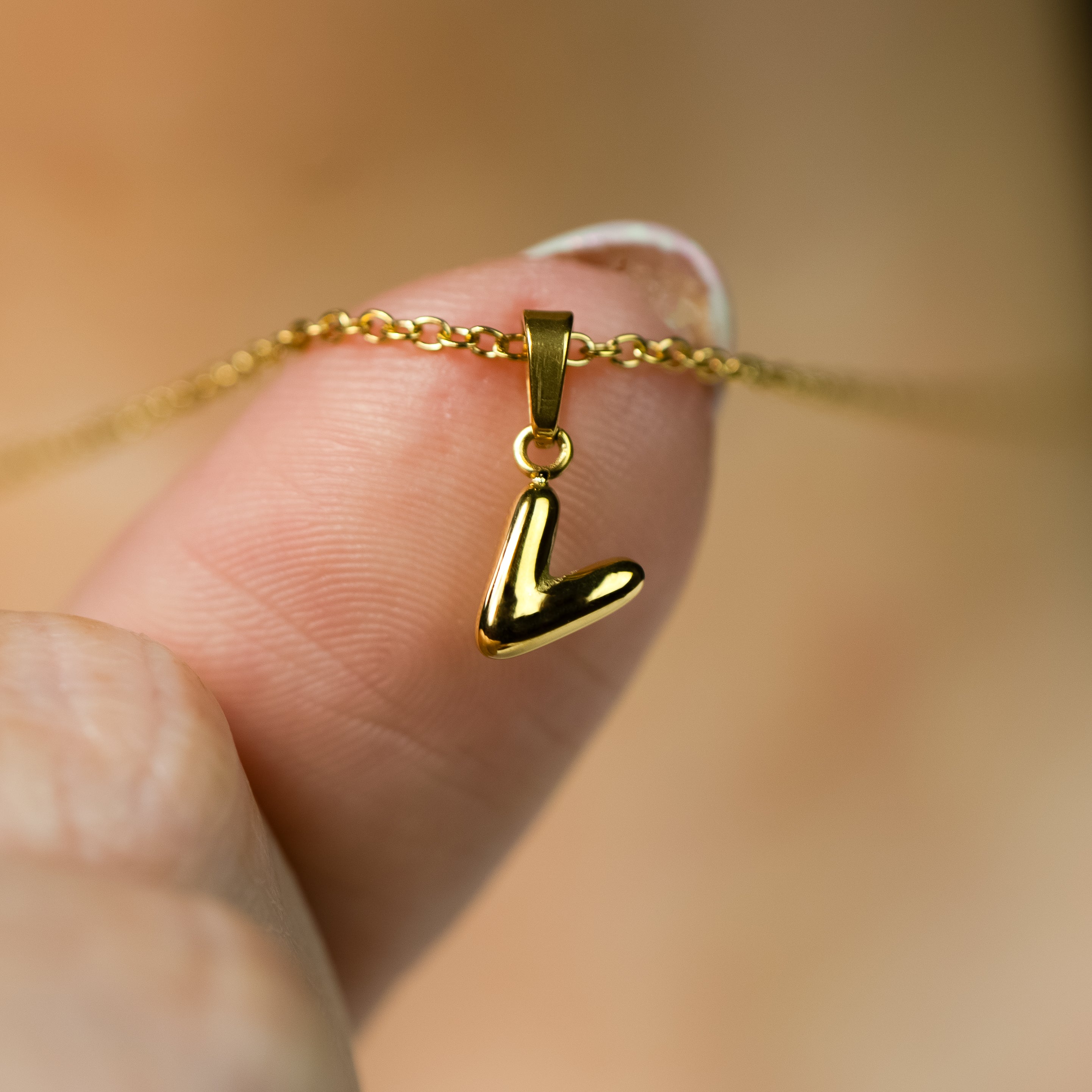 Stackable "V" Balloon Initial Letter Necklace