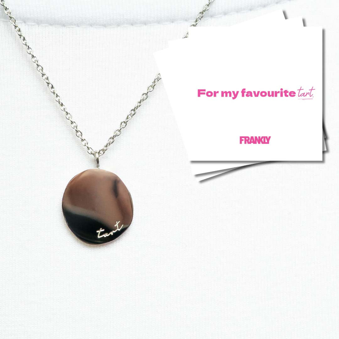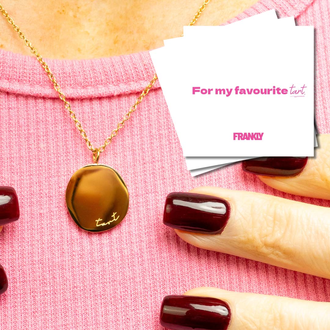 This pendant isn’t just jewellery; it’s a tiny, elegant insult wrapped in gold. Subtle enough to look sweet from afar… until someone leans in and clocks the chaos. And the backing card says it all: “For my favourite tart.” A compliment, obviously.